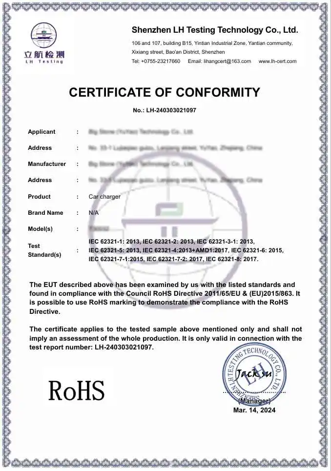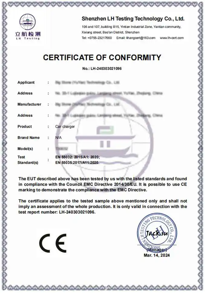 R : En tant qu'usine professionnelle, nos produits sont entièrement conformes aux normes internationales de sécurité et d'environnement. Nous fournissons des produits certifiés CE et RoHS. De plus, notre usine de production est certifiée BSCI et ISO, garantissant que nos adaptateurs de chargeur de voiture répondent aux normes techniques et éthiques rigoureuses requises par les marques mondiales haut de gamme.