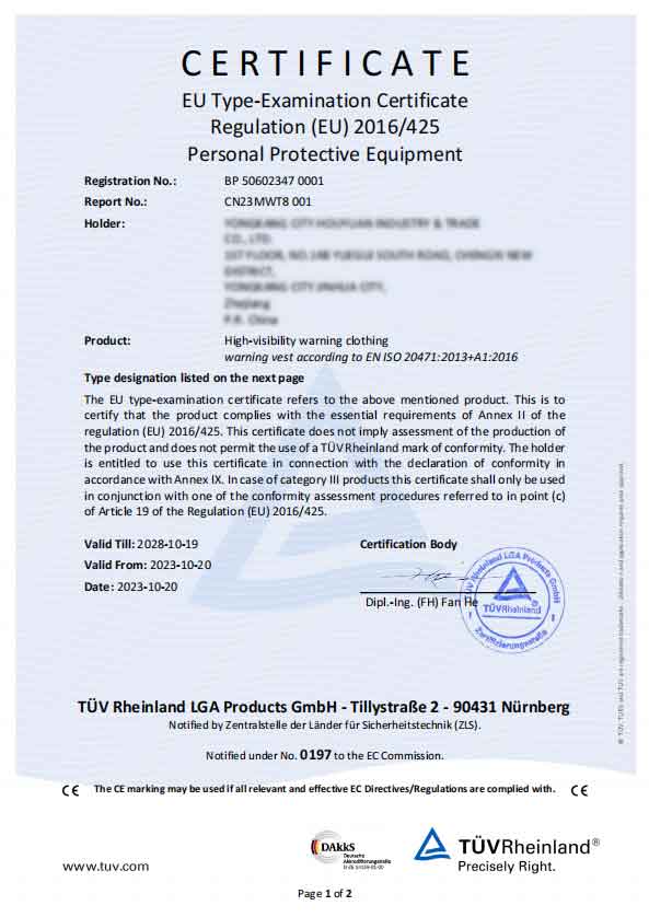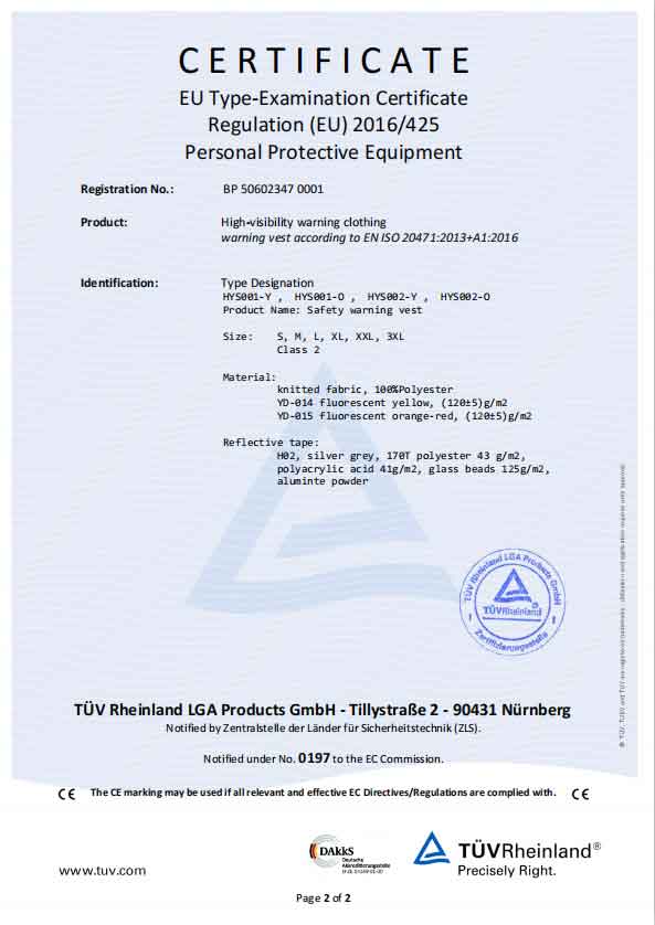 A2 : Tous les gilets de sécurité avec logo personnalisé passent les tests certifiés EN 20471 et sont pleinement qualifiés pour l'importation de sécurité routière dans l'UE et les achats d'ingénierie en gros.