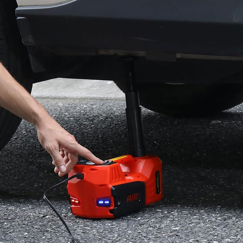 Contrairement aux crics à usage unique, ce kit intègre le levage, le gonflage, le retrait des écrous et l'éclairage, éliminant ainsi le besoin d'outils séparés. Le feu LED avant éclaire les zones de travail, tandis que le feu clignotant arrière avertit la circulation venant en sens inverse.