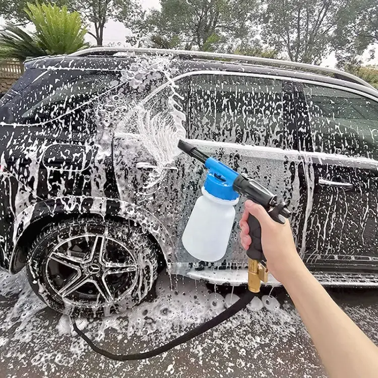 Ce pistolet de lavage à mousse sous pression est un outil facile à utiliser pour tout véhicule. Grâce à la puissance de votre tuyau d'arrosage, le pistolet à mousse crée un super alcali qui aide à éliminer la saleté et les crasses de la route pour un nettoyage parfait. C'est également le produit le plus vendu de notre entreprise. Fabriqué à partir de matériaux recyclables, il a obtenu les certifications CE et RoHS. Bienvenue pour vous renseigner sur les prix !