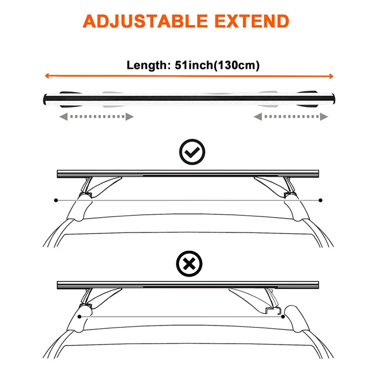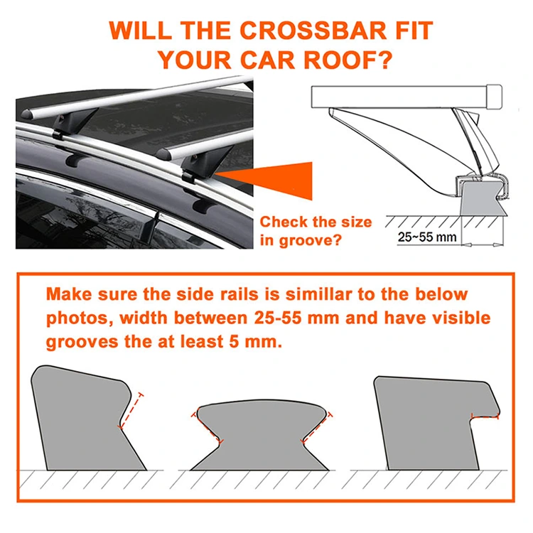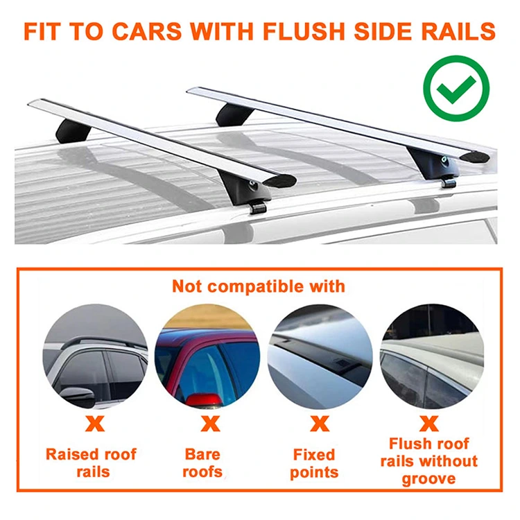 Compatibilité d'installation : s'adapte uniquement aux rails latéraux affleurants (voir schéma), évitant ainsi les risques d'installation sur les toits surélevés.