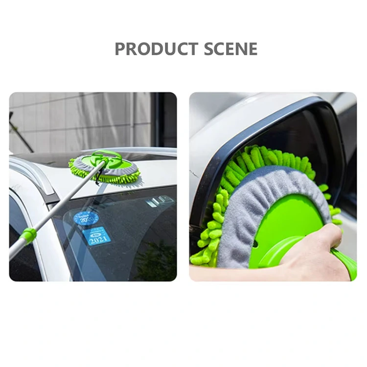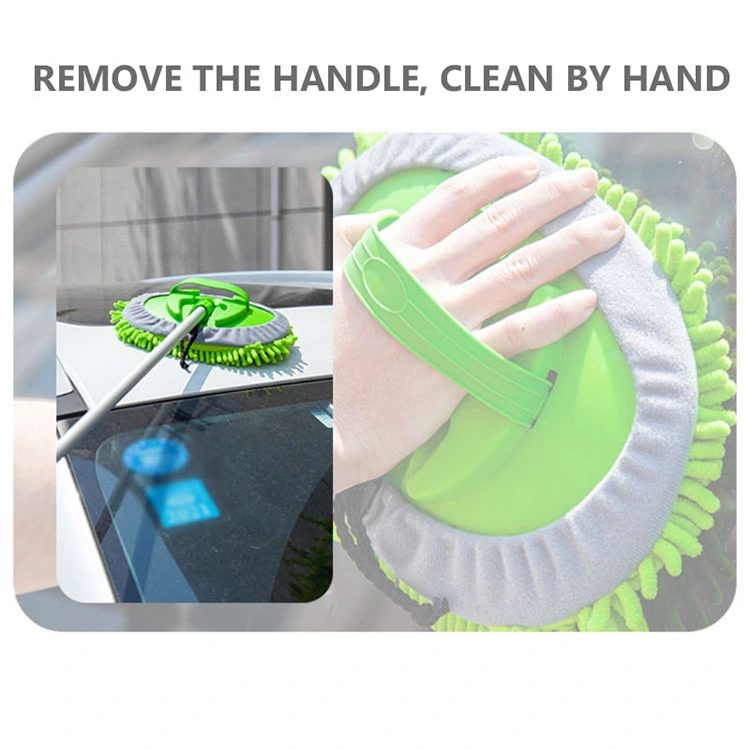 Facile à démonter et à remplacer : la vadrouille télescopique de lavage de voiture à bas prix est simple et durable. Il est doté d'une housse de nettoyage verte amovible avec un bord en chenille grise et un cordon de serrage intégré. La sangle élastique permet de le serrer ou de le desserrer facilement, ce qui le rend facile à ajuster et à remplacer.